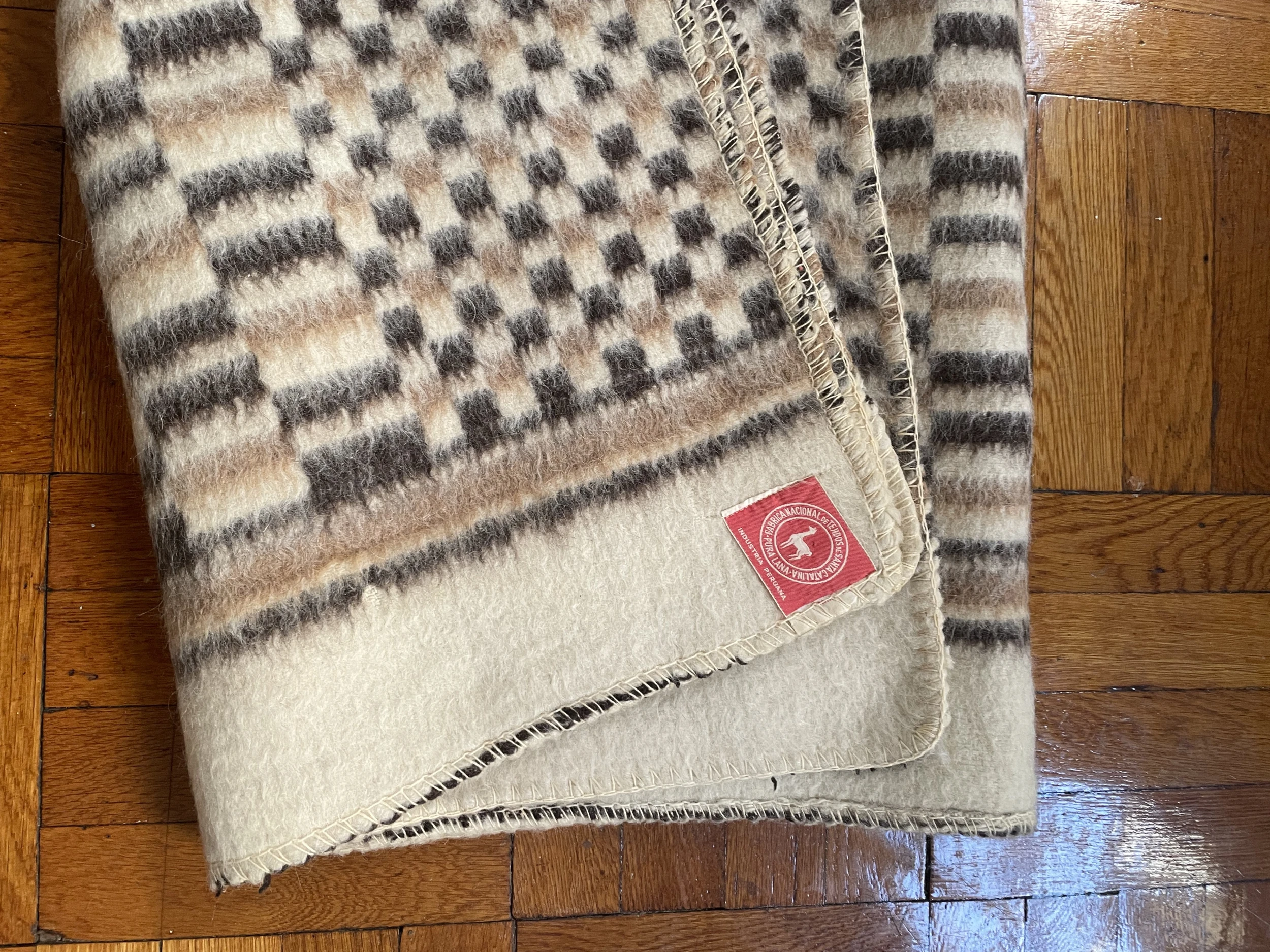 Stunningly chic Alpaca Blanket Made in Peru. Tonal Brown Rectangular Checkerboard Rug with a Square Checkerboard Boarder.
