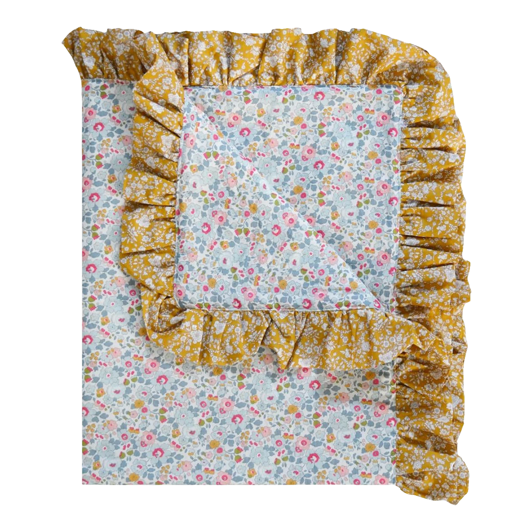 The prettiest gathered frill edged bedspreads are hand-made using the luxurious Liberty print Tana Lawn®, silky soft cotton, which is perfect for delicate skin. They can be used as an extra layer in the cooler months or on their own the rest of the year. Place them at the foot of the bed to keep your feet toasty or throw over a settee to snuggle up with. A must-have piece to bring some Liberty print charm to bedrooms or sitting rooms.