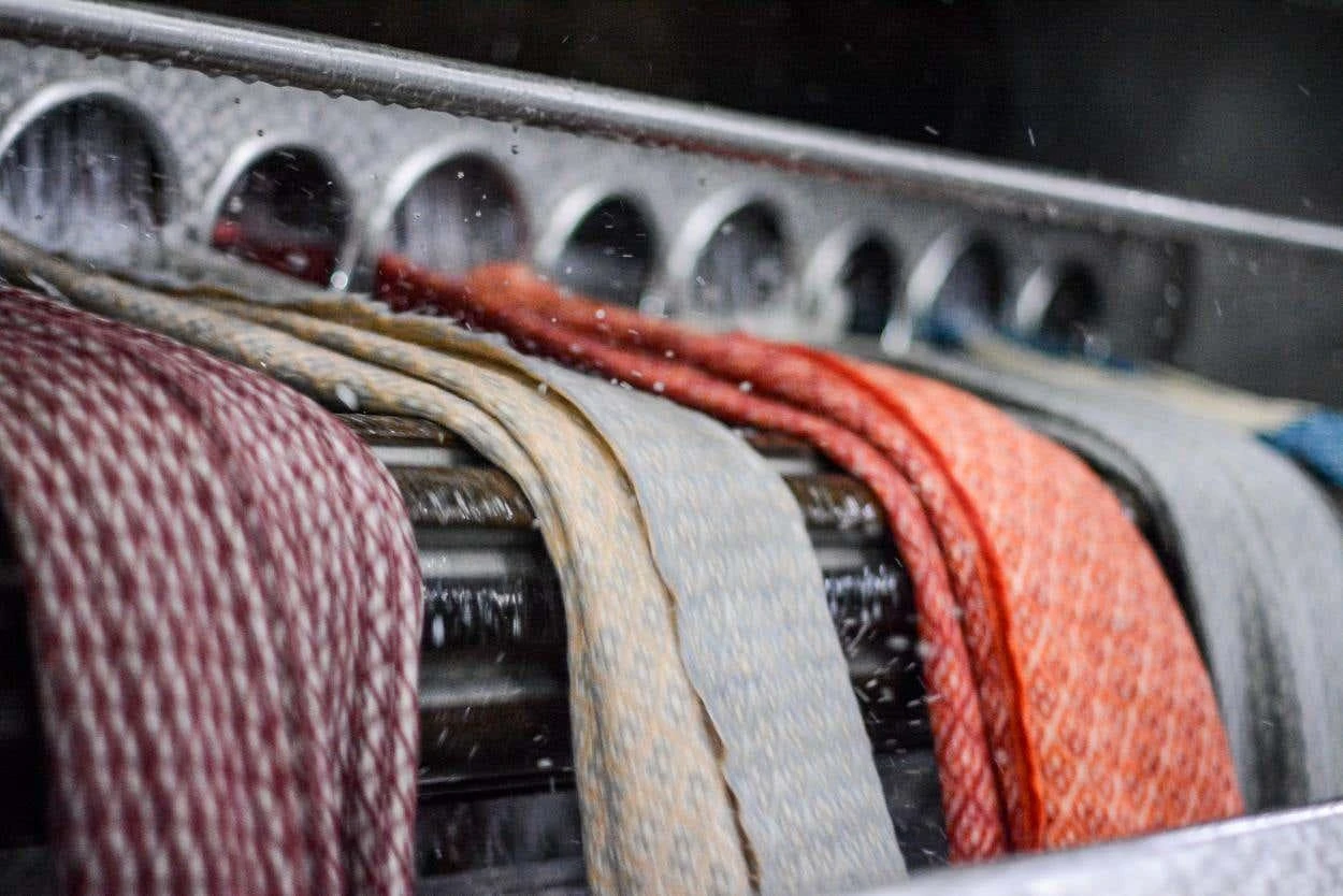 The machinery used was built to last from the 1960’s and is carefully maintained by local skilled technicians. Certified dyes that support our health and environment are always used. Every step of the sourcing and manufacturing process reveals the exquisite end result with every piece made.