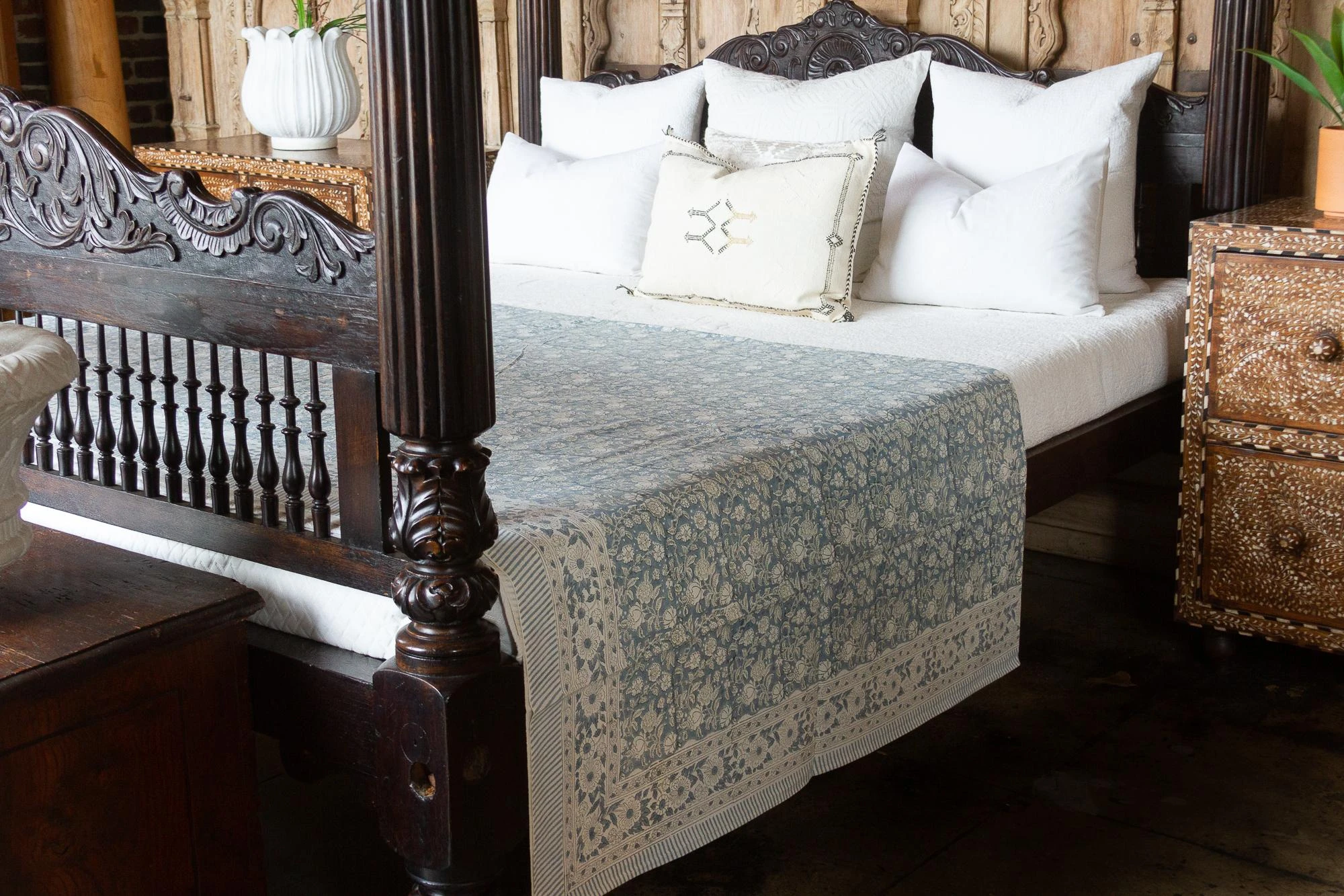A beautiful nigella floral print bedspread, this coverlet adds a lively and bohemian touch to your bedroom decor. Made from 100% cotton each bedspread is handcrafted using the age old Indian technique of hand block printing. The art of block printing is a method of using a drawn design to create a hand carved wooden block template to stamp the design onto the fabric, it is an Indian artistry that has been around since the 14th century.