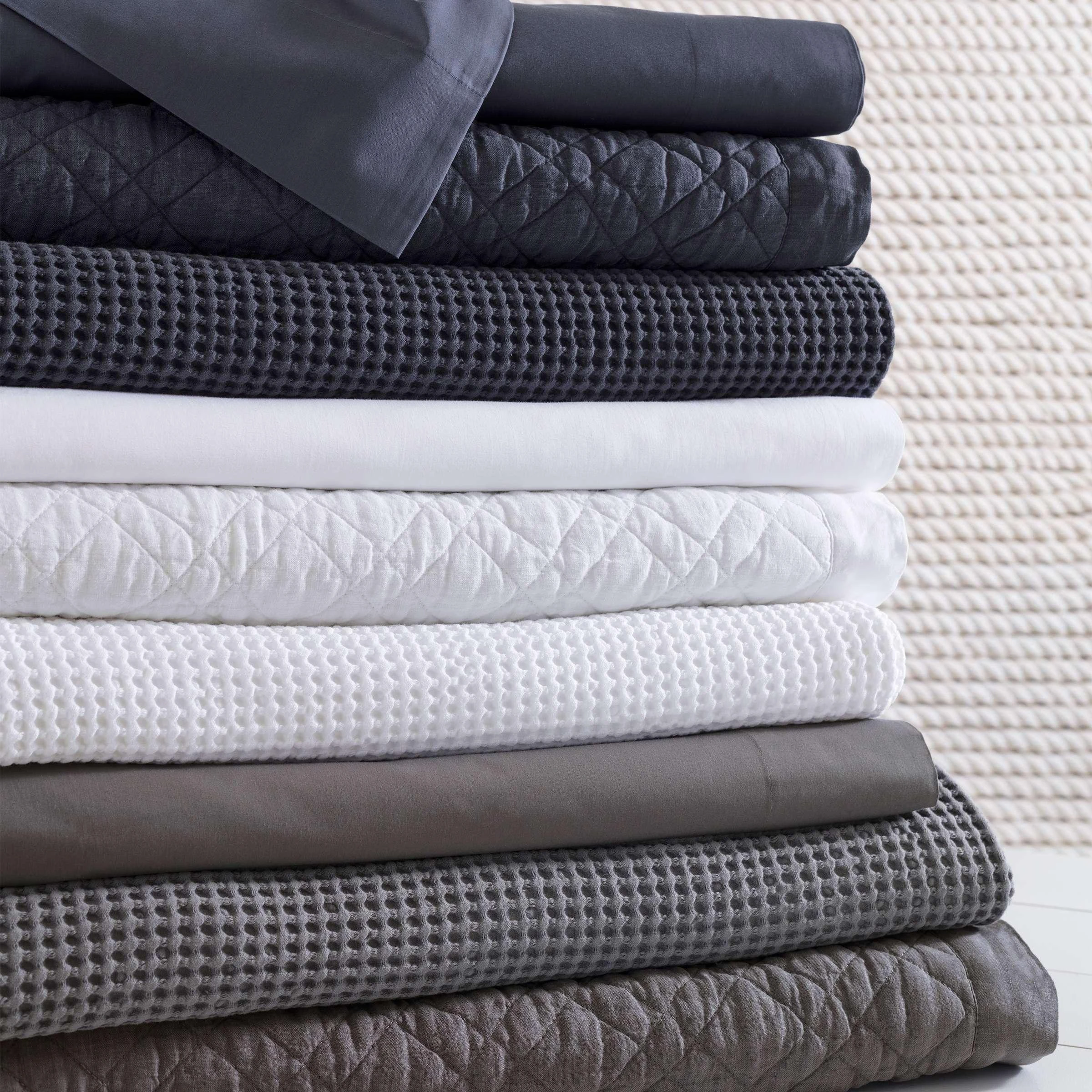 Dress your bed with our refreshed and updated cotton matelassé waffle weave for a frothy, soft look, texture and handfeel. Expertly woven in Portugal by weavers renowned for their artistry and expertise, generously sized and tailored, then stonewashed and tumbled to buttery soft laundered comfort.
