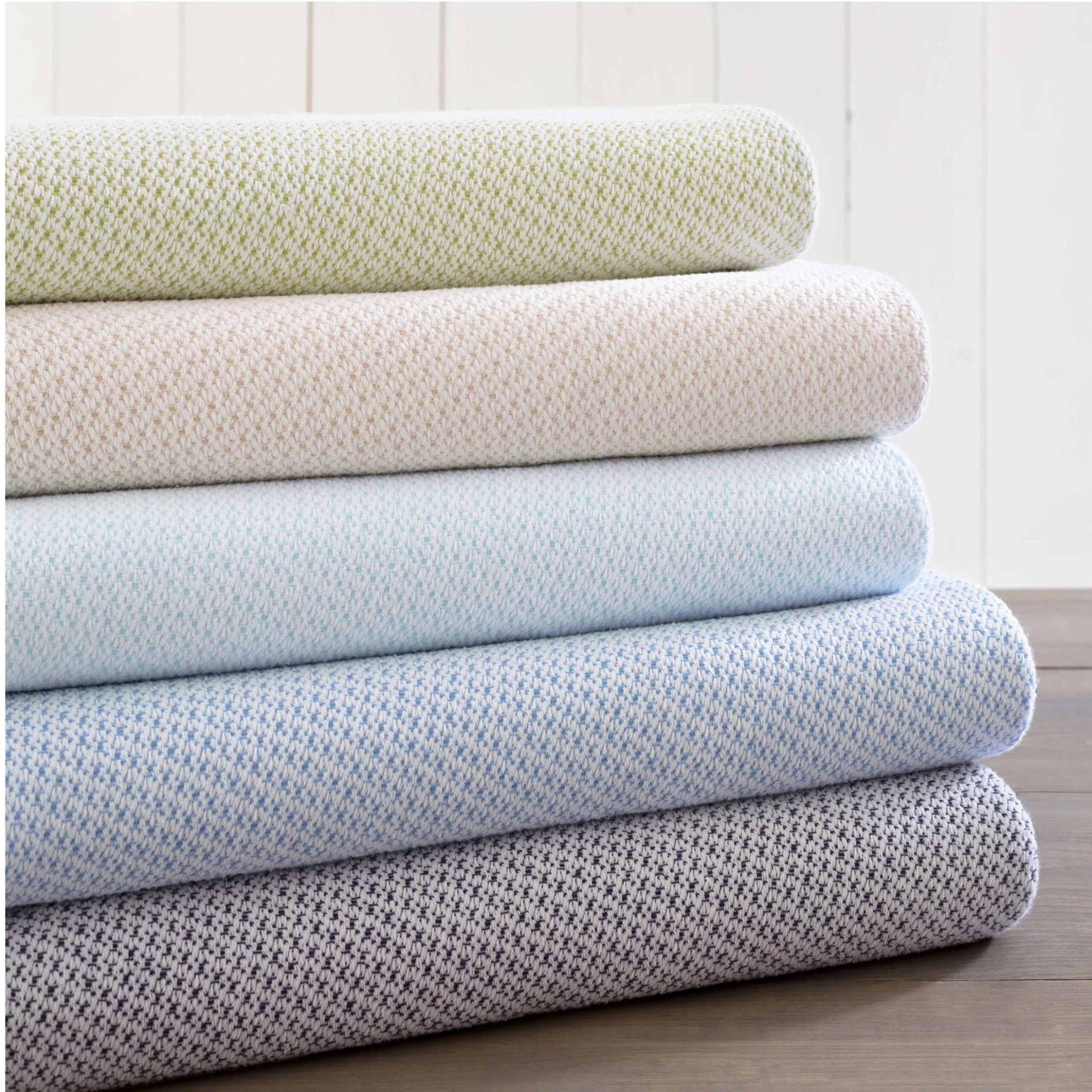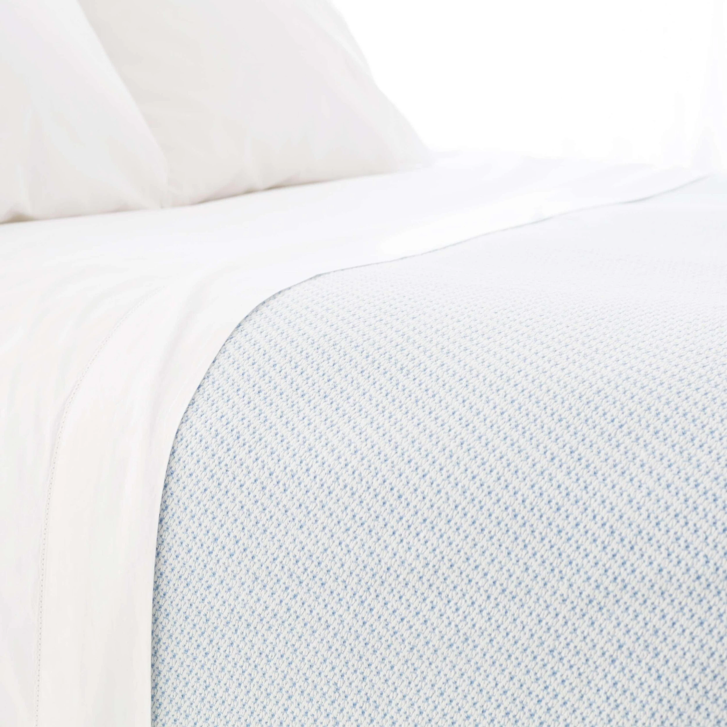 This softly textured cotton knit throw in French blue and white offers the perfect amount of coziness and pattern for …