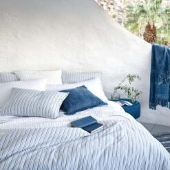 Kit Kemp For Pine Cone Hill Ric Rac Stripe Blue/Green Coverlet, King
