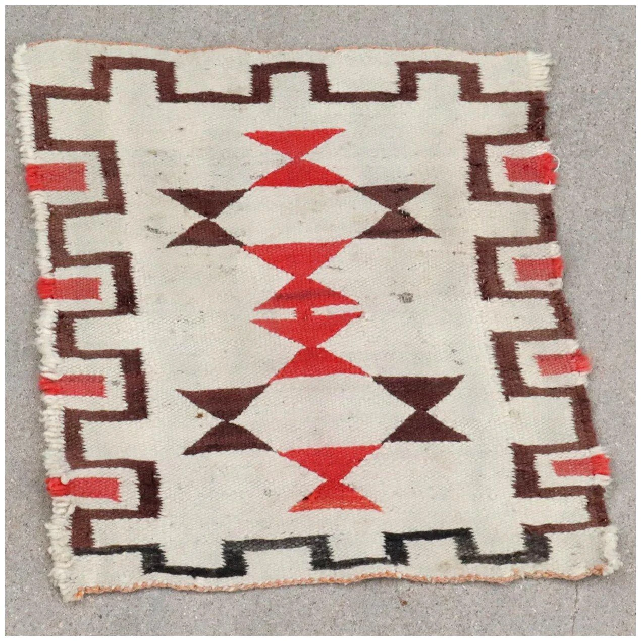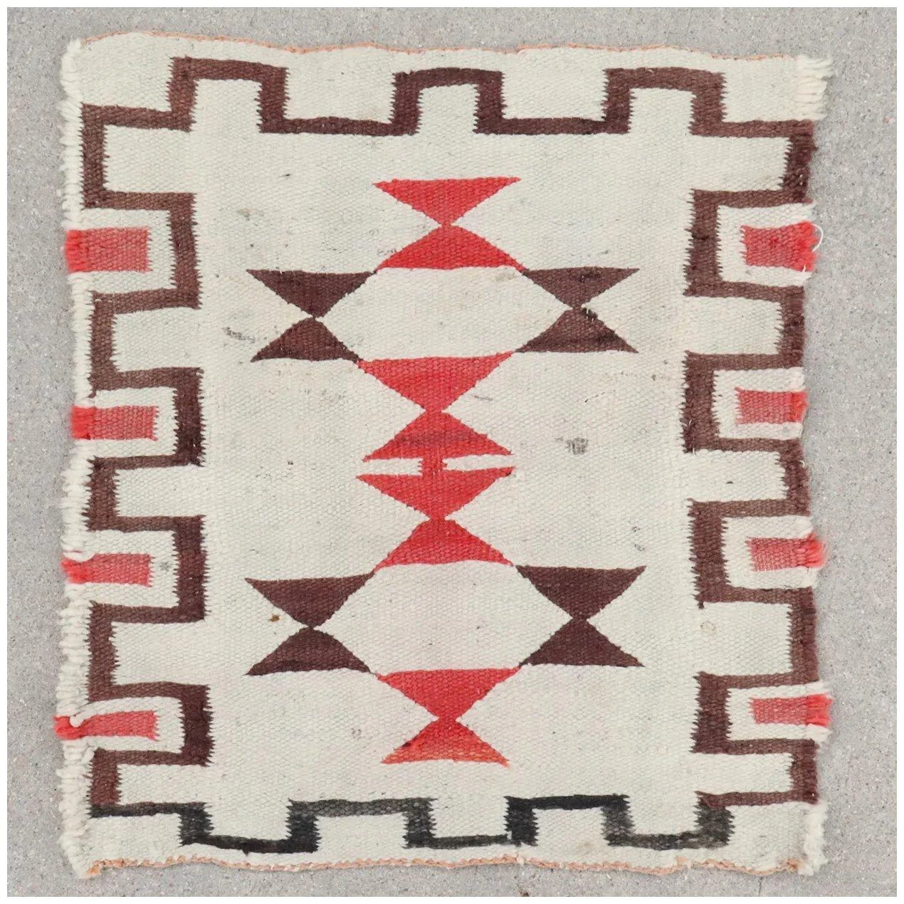 An antique or vintage sampler or throw with a geometric design. This small weaving was made to use as a …