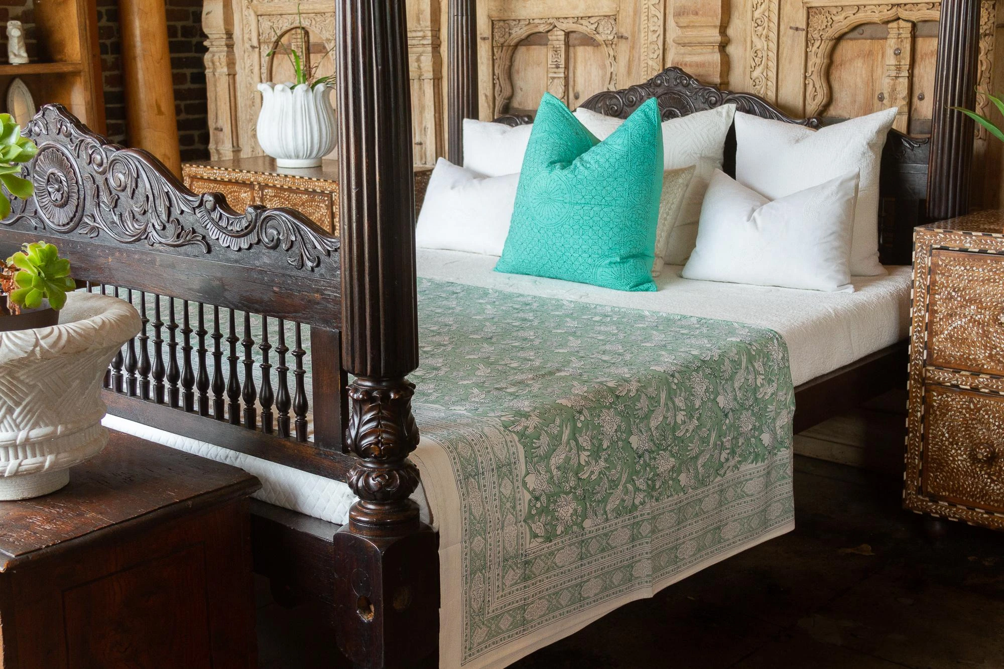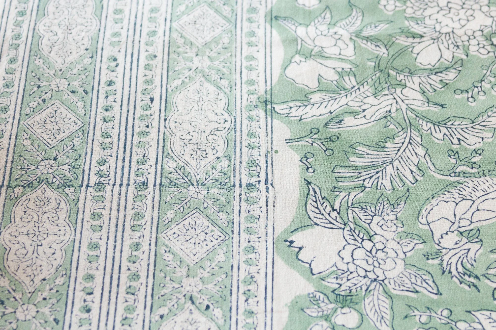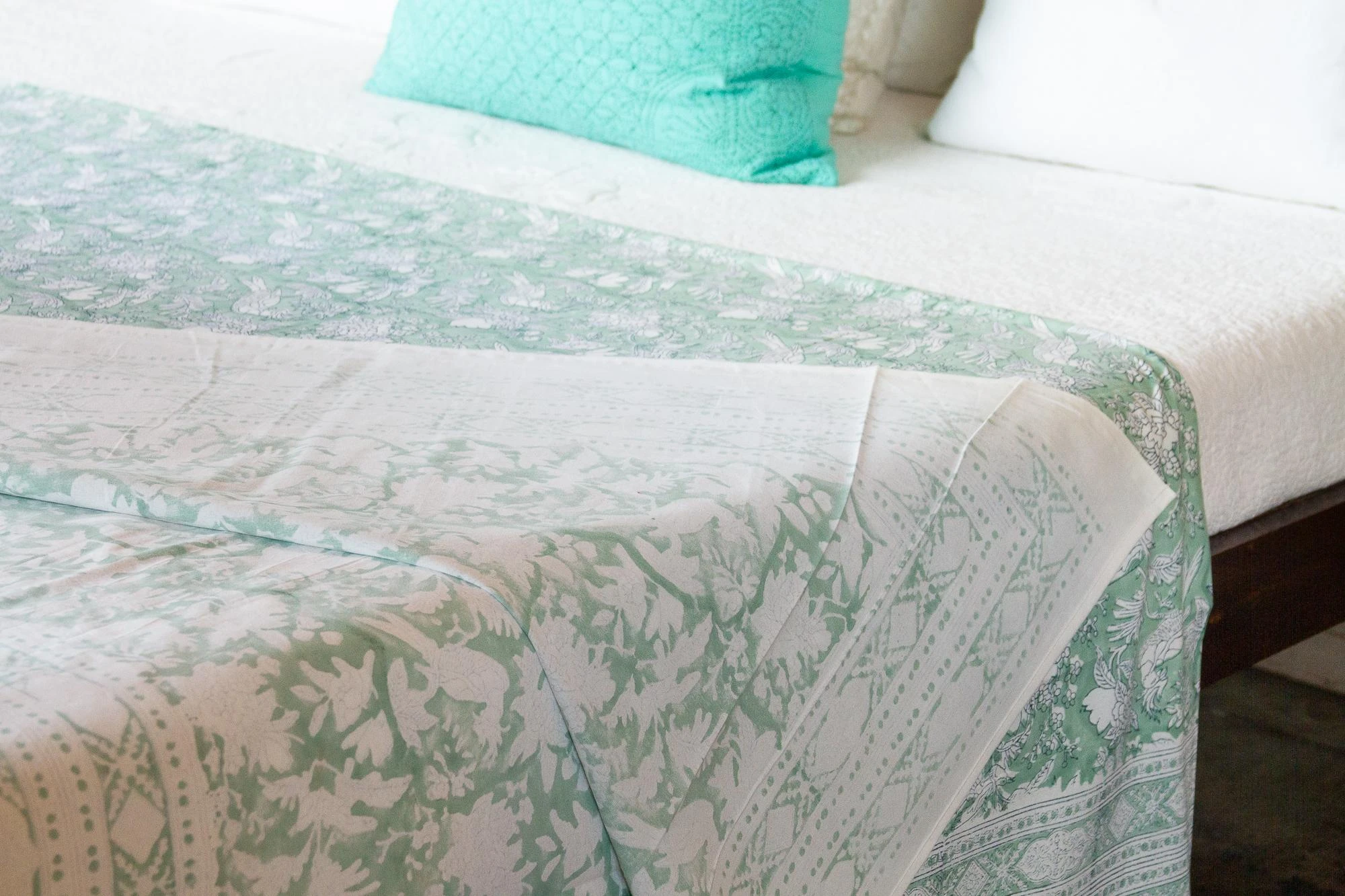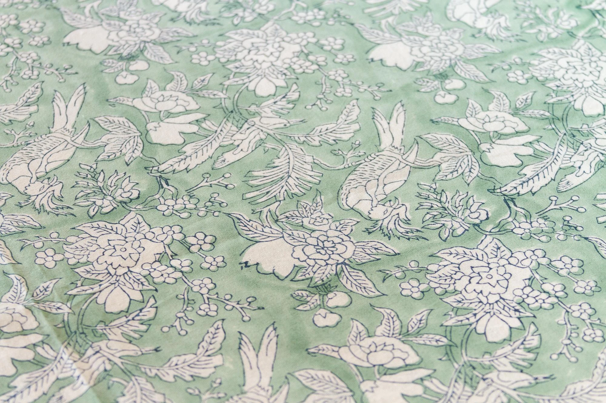 A beautiful bird and floral print bedspread, this coverlet adds a lively and bohemian touch to your bedroom decor. Made from 100% cotton each bedspread is handcrafted using the age old Indian technique of hand block printing. The art of block printing is a method of using a drawn design to create a hand carved wooden block template to stamp the design onto the fabric, it is an Indian artistry that has been around since the 14th century.