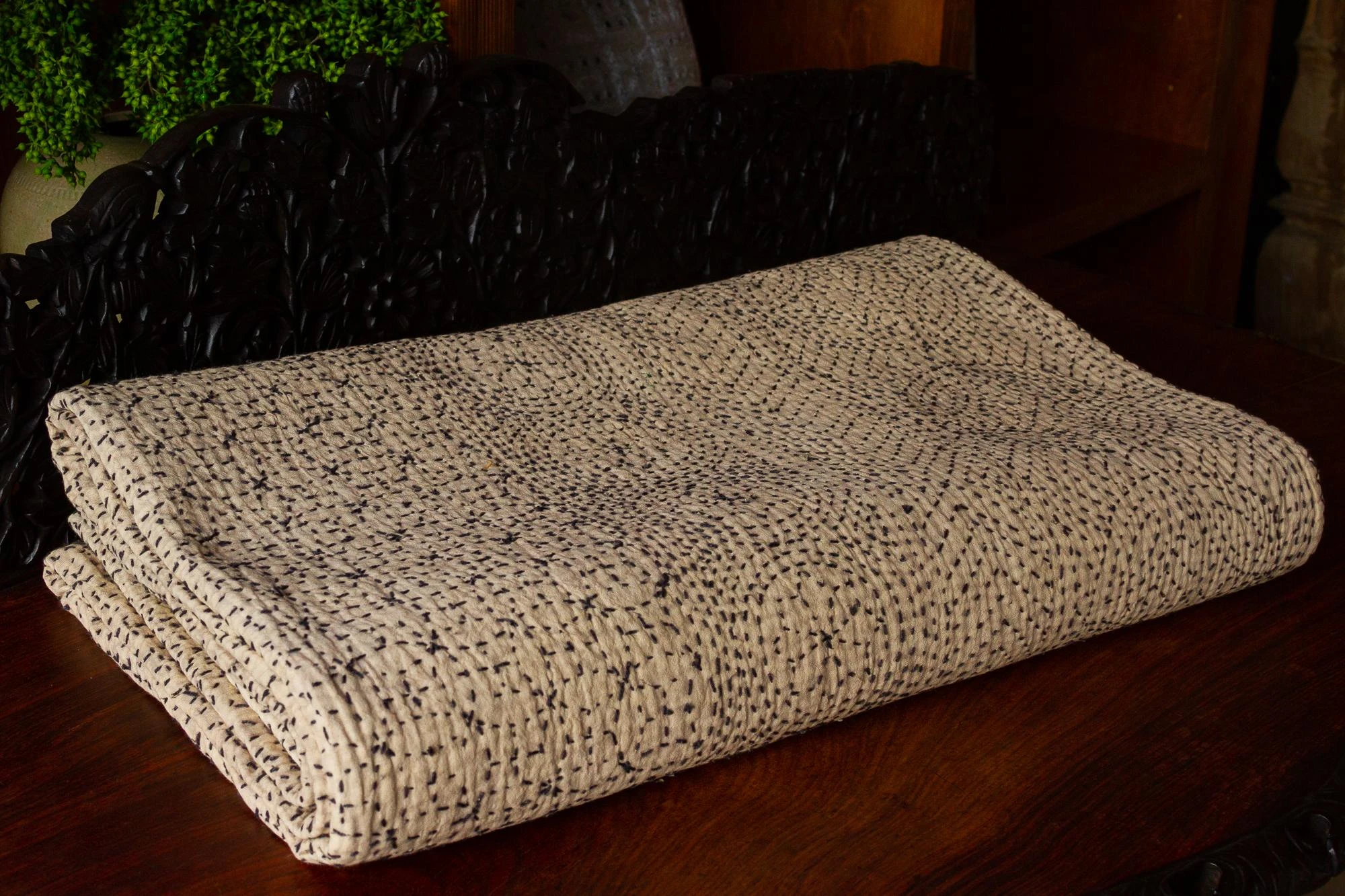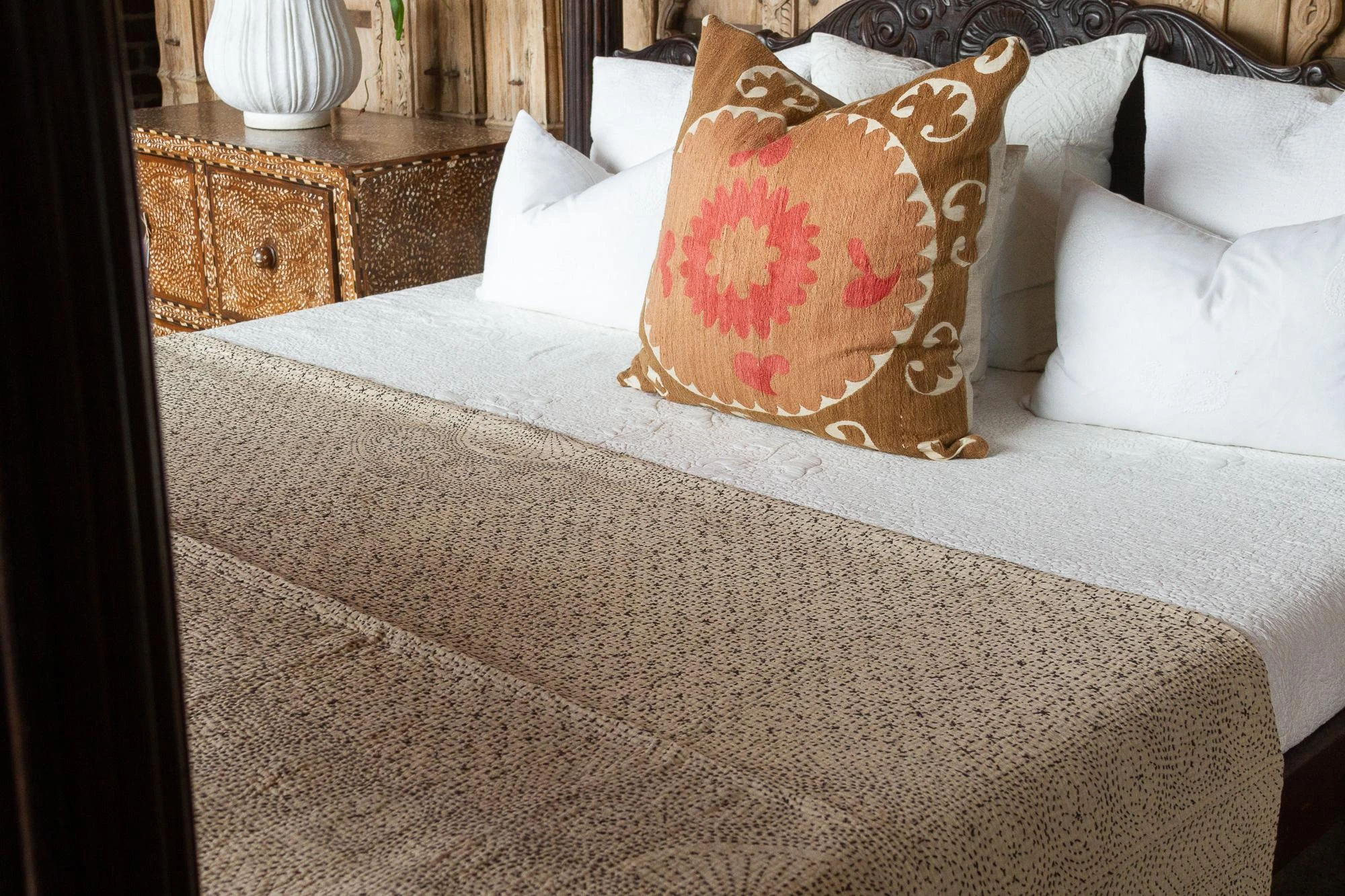 Celebrate the feminine with the handmade Filanan Gudari Bed Cover. This ornate textile is cotton based and adorned with the Meghval tribe’s thread work. The embroidered medallions in this incredibly soft piece of art represent the circle of life.